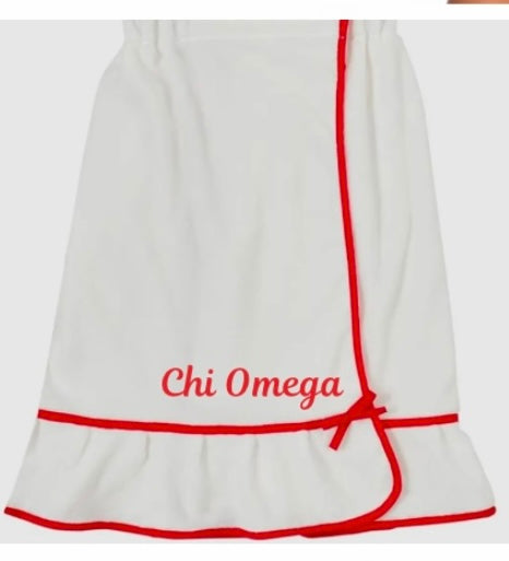 Towel wrap white with red trim